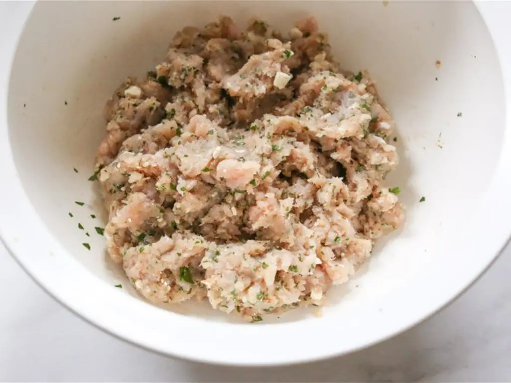 Add the 93/7 Lean Ground Turkey (1 lb) and gently mix until all of the ingredients are combined.