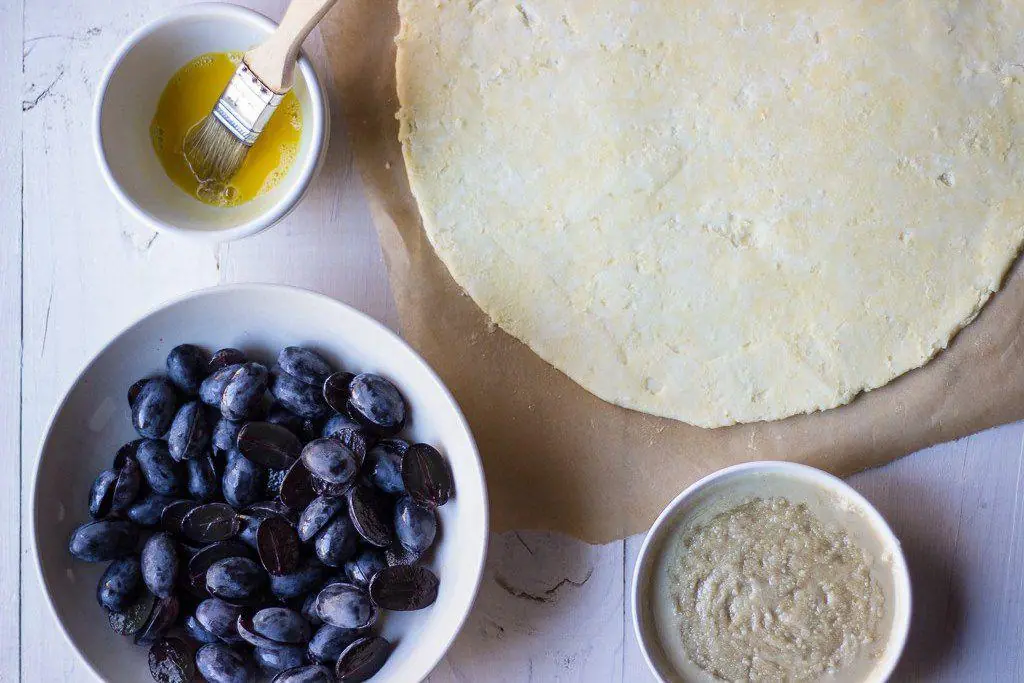 Roll out Pie Crust (1) into a 11 inch round and place on a baking sheet lined with parchment.