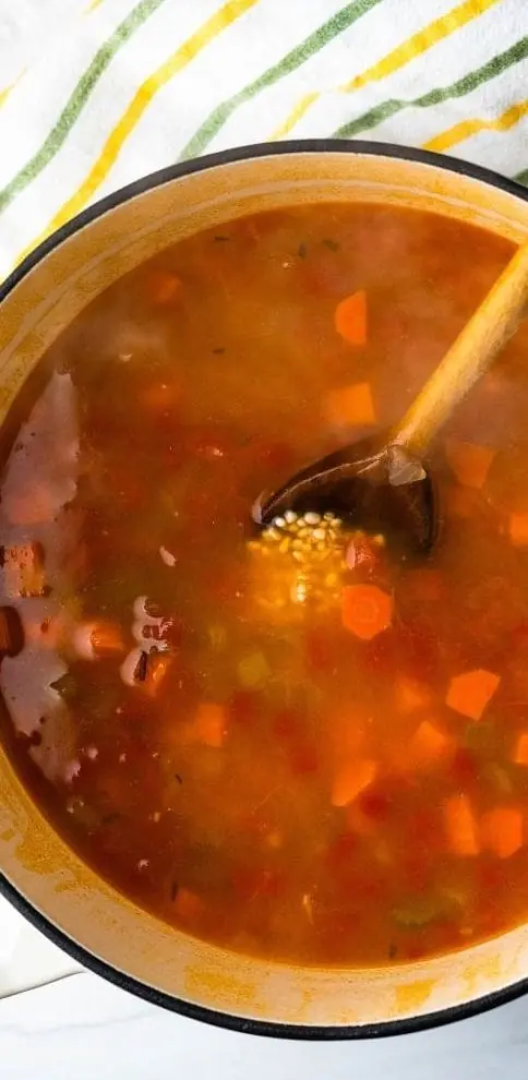 Stir in the Pearl Barley (1/2 cup) and cook for 35 to 40 minutes or until the barley is almost done cooking. (Note, if using quick-cooking barley, increase the amount to 3/4 cup and cook for 15 minutes or until done).