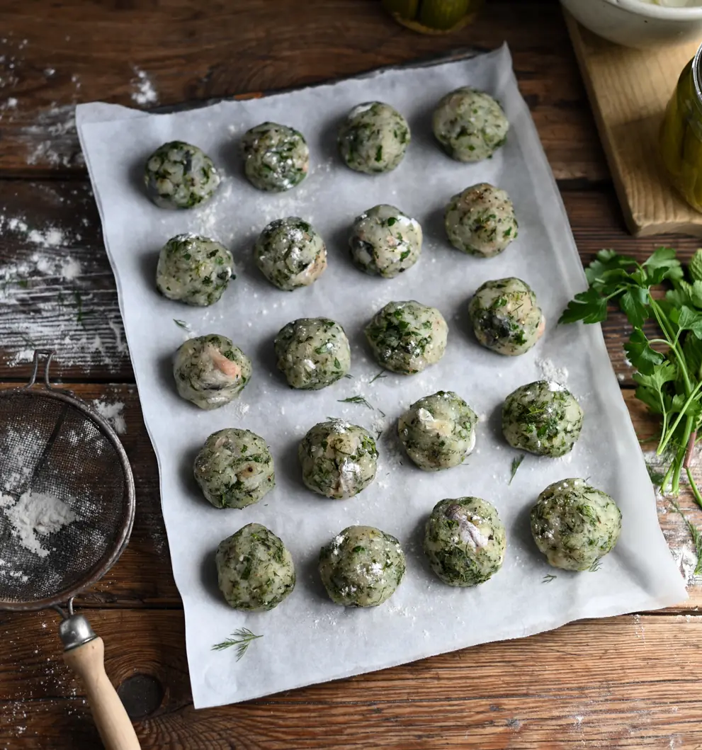 Use a spoon to shape the mixture into small balls, arranging them on a lined baking sheet. Refrigerate the polpette for 1 hour or overnight to firm up.