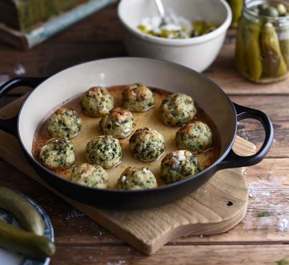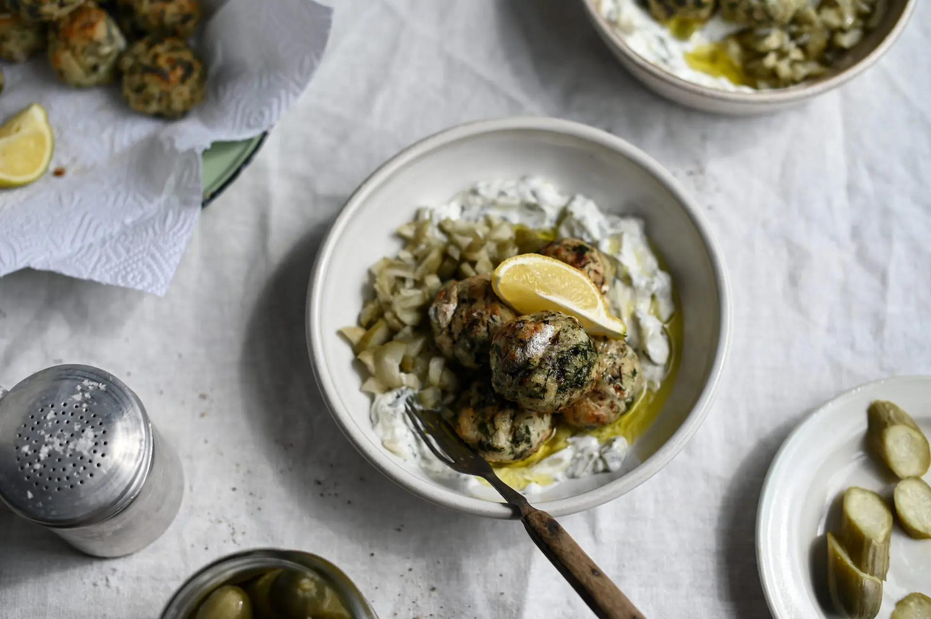Herbed Hake Polpette with Dill Yogurt Recipe is a fresh and zesty way to enjoy Cape Hake. The polpette is served with a herby, lemony yogurt, and crunchy homemade pickled cucumbers. Perfect for a snack dinner or tomorrow’s lunchbox.