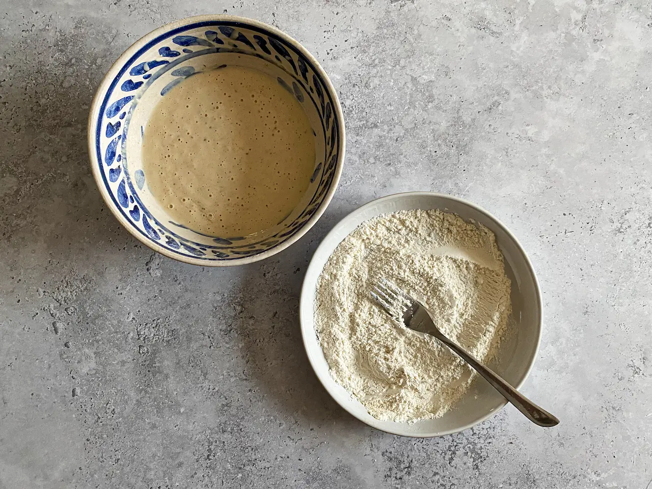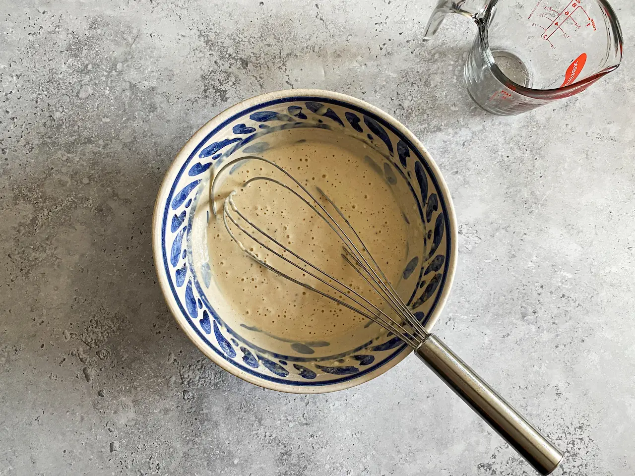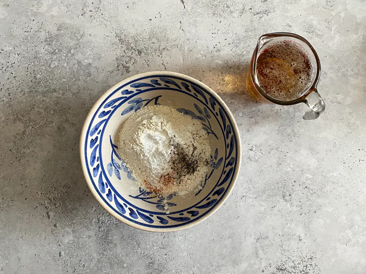 Add the Beer (1 cup) and whisk vigorously until smooth. Allow the batter to stand for 30 minutes before use.