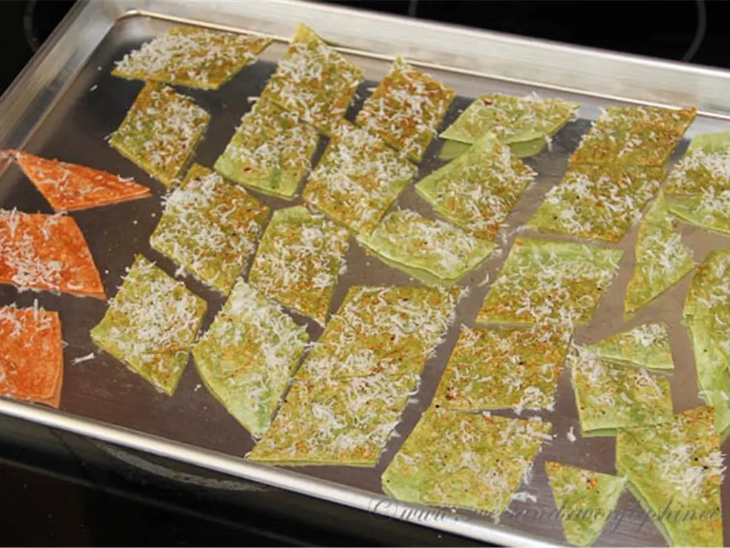 Transfer the wrap pieces onto the baking sheets. Bake the chips for 10-15 minutes, or until crispy.