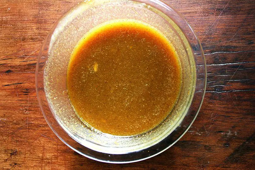 Combine Butter (1/2 cup), Honey (1/2 cup), Dijon Mustard (4 Tbsp), Mango Chutney (2 Tbsp), Curry Powder (1 tsp) and mix well.