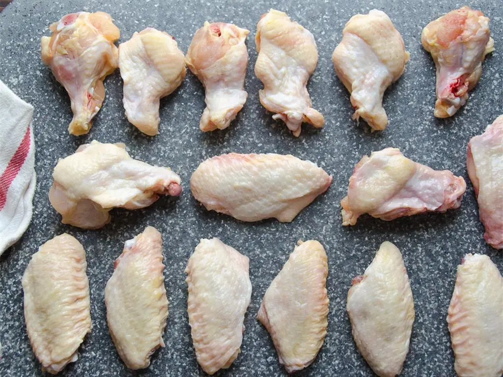 Cut the Chicken Wings (4 lb) into sections: drums, flats and tips. Use a sharp chef's knife to cut between the joints of the drums and flats, and flats and tips. Save tips for making stock.