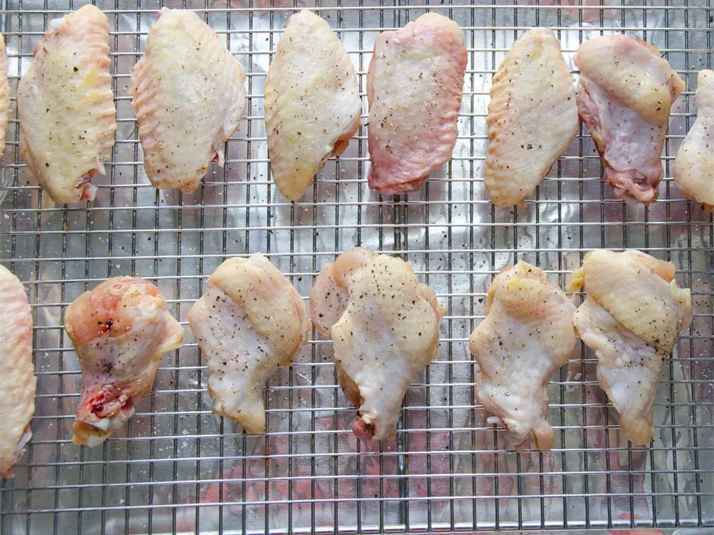 Lay the drums and flats on the wire rack, so they are not touching. Sprinkle lightly with Kosher Salt (to taste) and Ground Black Pepper (to taste).