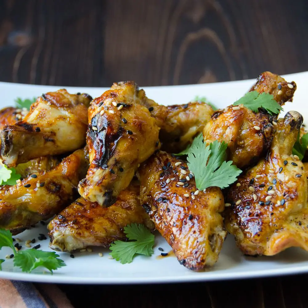 Transfer wings to a serving platter. Sprinkle with Black Sesame Seeds (1 tsp) or Toasted White Sesame Seeds (1 tsp) and Fresh Cilantro (to taste). Serve with reserved marinade for dipping or drizzling over the wings.