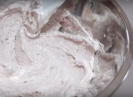 Add the meringue to the sifted ground almond flour and icing sugar. Using a spatula, start the macaroon process until you get a molten-like mixture that drips down like a ribbon when lifted.