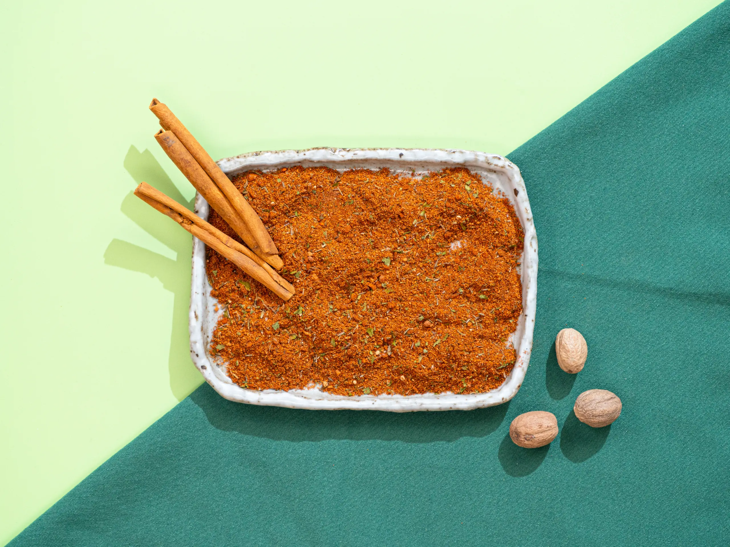 In a small mixing bowl, add the Dark Brown Sugar (3 Tbsp), Smoked Paprika (3 Tbsp), Coarse Salt (3 Tbsp), Simply Organic Garlic Powder (2 Tbsp), Simply Organic Onion Powder (2 Tbsp), Ground Black Pepper (1 Tbsp), Baking Powder (1/2 cup), Dried Thyme (4 Tbsp), Dried Parsley (4 Tbsp), Crushed Red Pepper Flakes (4 Tbsp), Simply Organic Cinnamon, Ground (4 Tbsp), Ground Nutmeg (4 Tbsp), Ground Cloves (4 Tbsp), Ground Cumin (4 Tbsp), and Cayenne Pepper (4 Tbsp) together and mix well. Store in an air-tight container for up to 6 months in a cool, dry place.