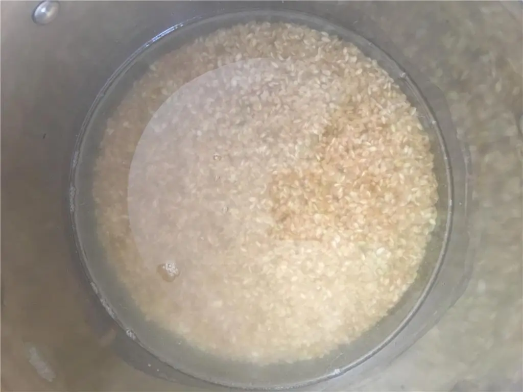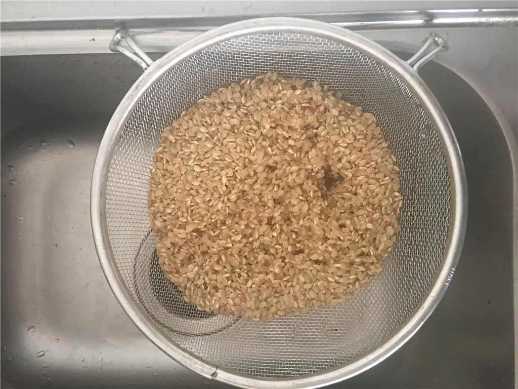 Rinse the uncooked Brown Rice (2 cups) in a strainer, until the water is clear.