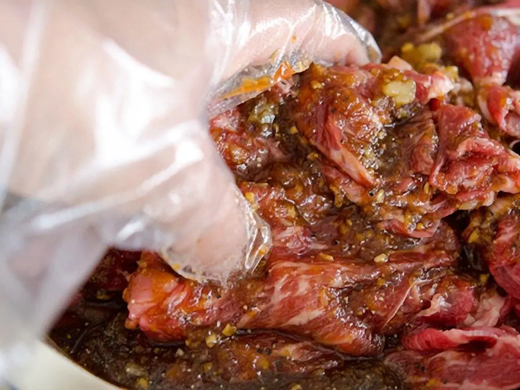 Place the beef in a large mixing bowl, pour the sauce, and mix well with your hand. Let it sit for 15 minutes for the meat to soak up the flavor.