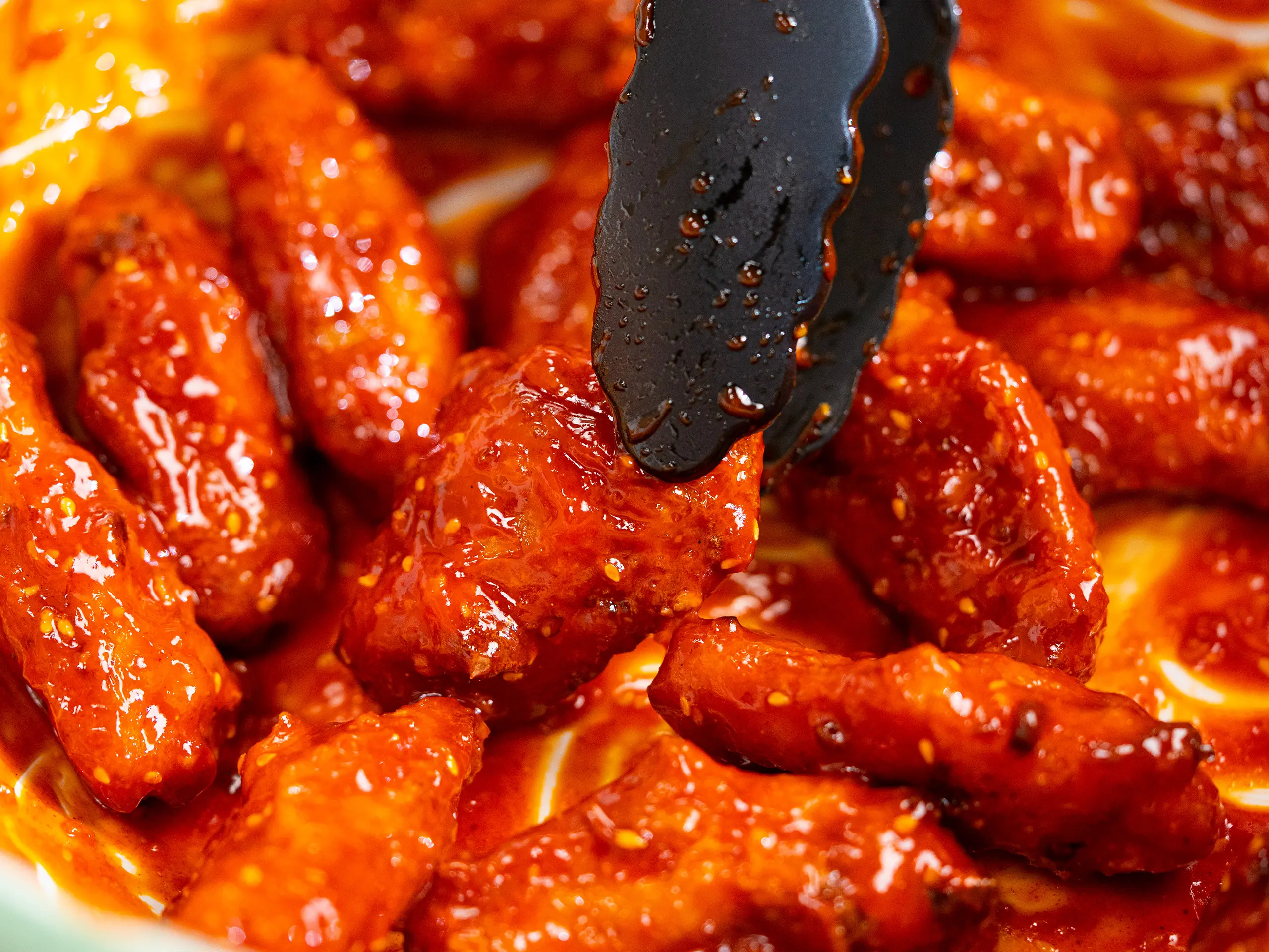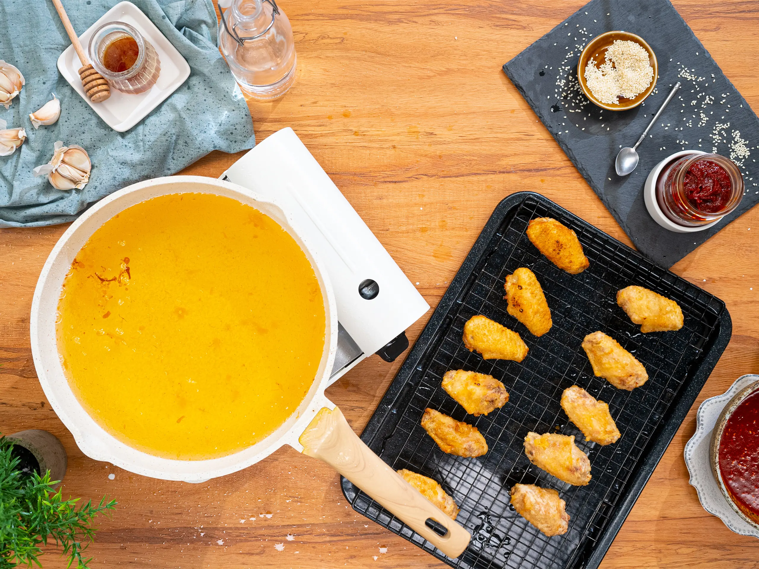 Add wings to a large bowl and drizzle with the sauce. Toss gently until fully coated.