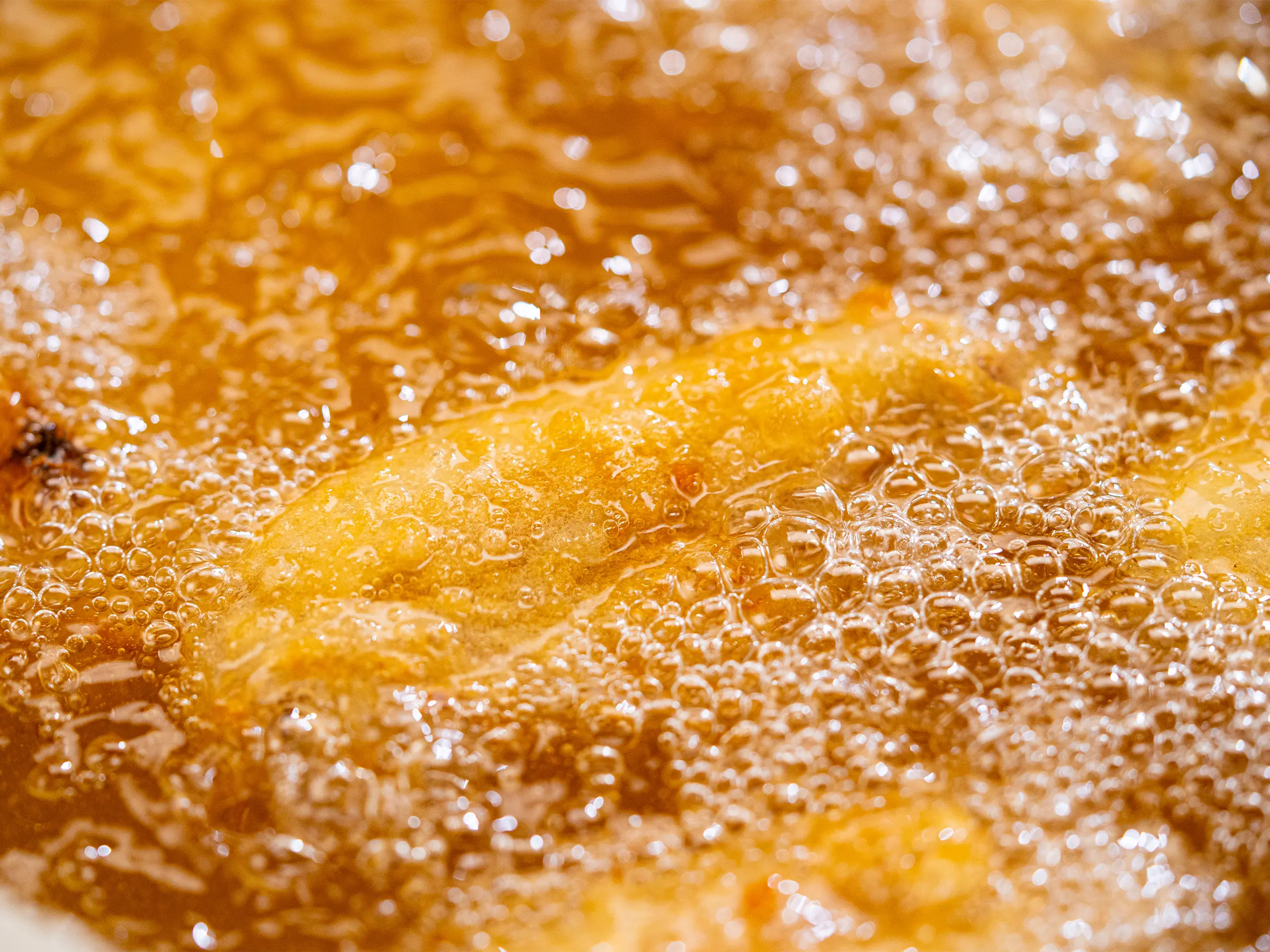 Heat 2-3 inches of Vegetable Oil (as needed) in a large, heavy-bottomed pot until the oil is shimmering, and bubbles appear when you stick the end of a chopstick or wooden spoon in the oil. If using a thermometer, bring the oil to 350 degrees F (180 degrees C).