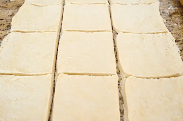 Put it back into the fridge to stay chilled until the dough is ready. When the dough is done rising, turn it out onto a well-floured surface and roll it out into an 8-inch square.