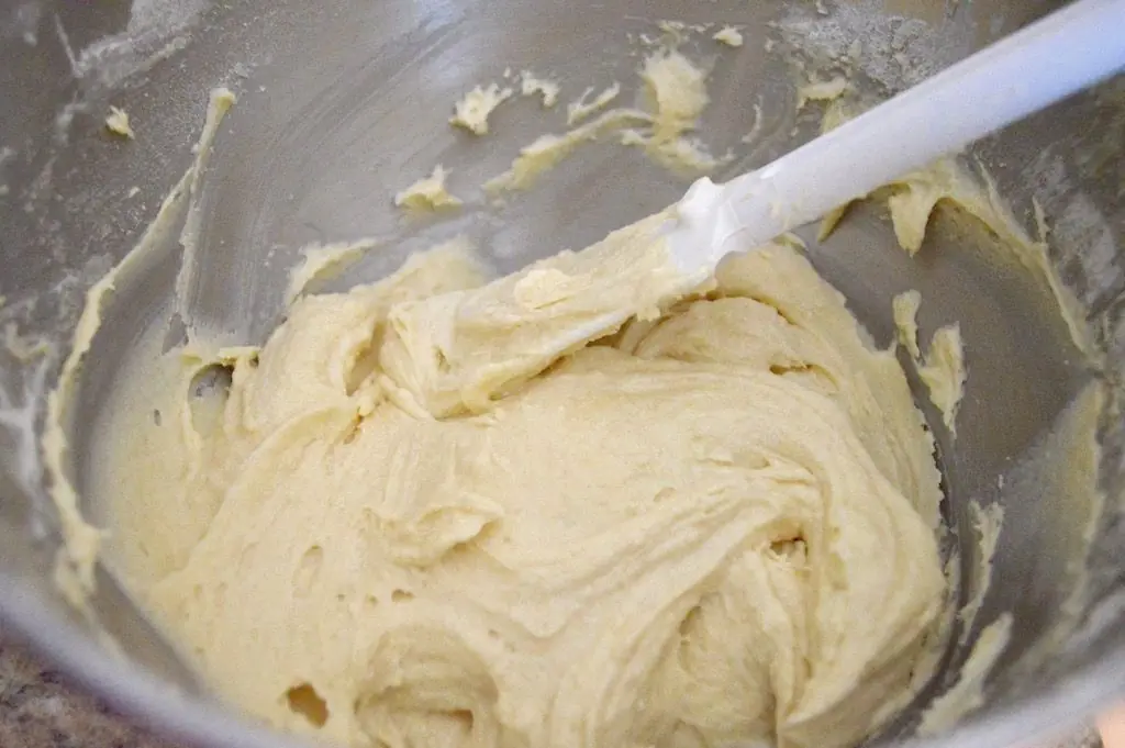 Then, set up a stand mixer with a paddle attachment and beat the Butter (1 cup) and Granulated Sugar (1 cup) together in its bowl. Add the Eggland's Best Classic Eggs (4) one at a time, pushing down the sides as you add them in. Finally, add 1/3 of the dry ingredients followed by the Milk (4 Tbsp). Repeat this again, and then end with the final 1/3 of the dry ingredients.