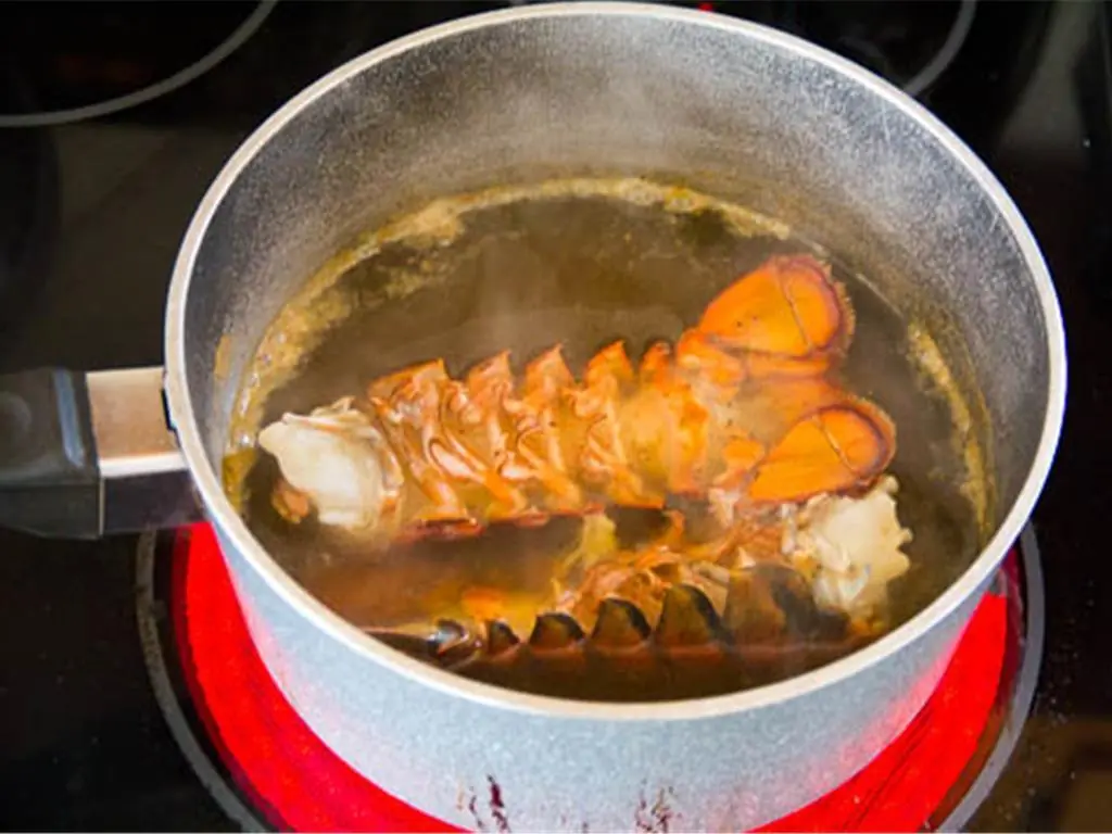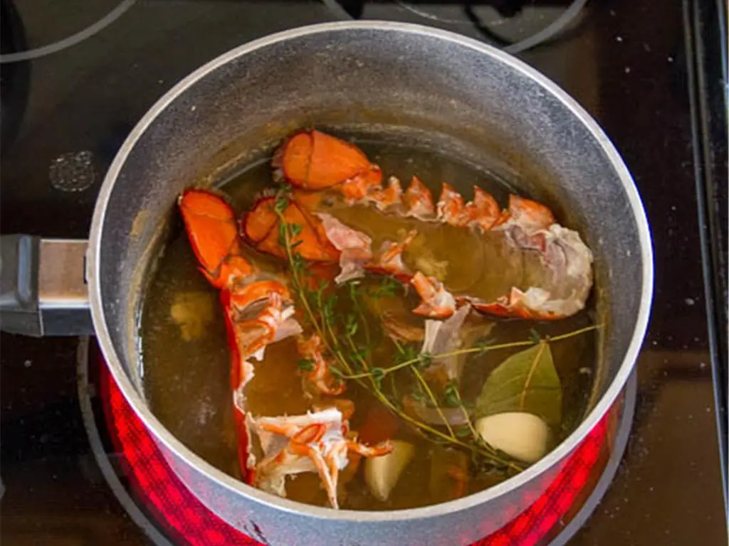 Take the lobster tails out of the water and remove the meat. Finely chop the lobster meat.
