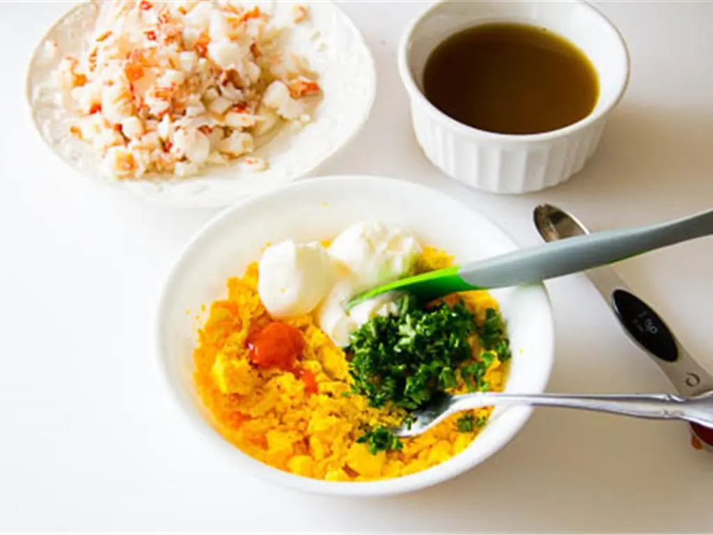 In a medium bowl, mash the egg yolks with a fork and stir in Mayonnaise (3 Tbsp), Fresh Parsley (1 Tbsp), and Hot Sauce (1/2 tsp). Mix in chopped lobster.