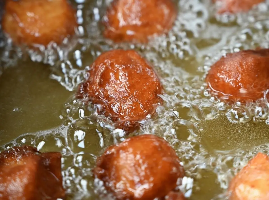 Stir the dough to decrease the size and release some of the air bubbles. Fill a large pot about a third of the way with Sunflower Oil (as needed) and heat to 390 degrees F (200 degrees C).