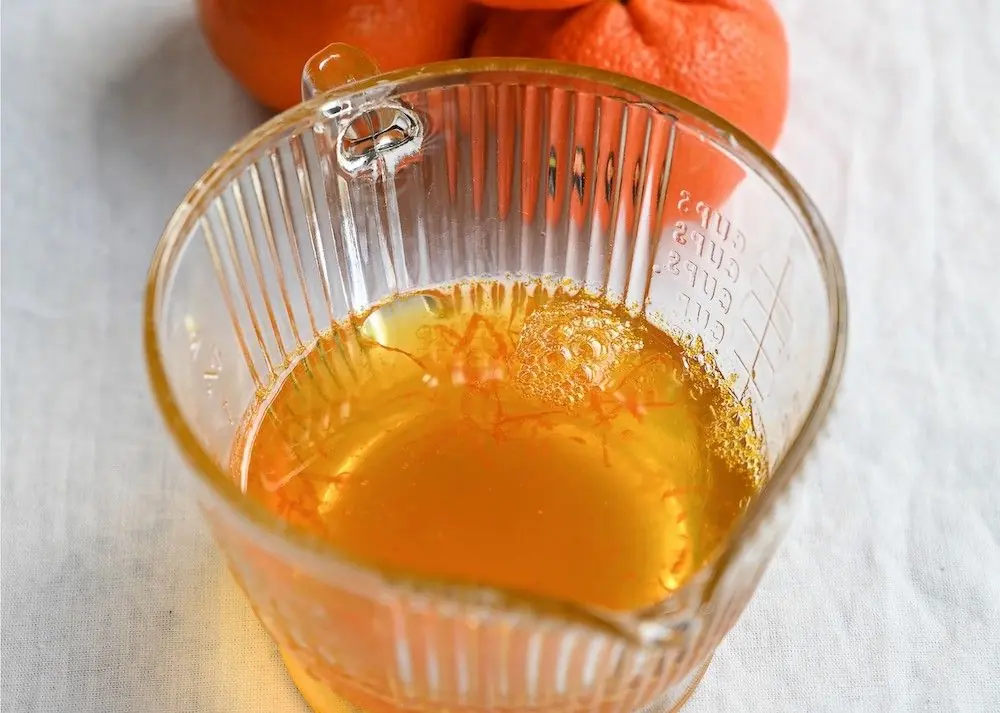 Combine Granulated Sugar (2/3 cup), Honey (1/3 cup), Water (1/2 cup), zest and juice from the Oranges (2) in a small saucepan and bring to a simmer, stirring to dissolve the sugar. Once the syrup has reduced and thickened, cool slightly.