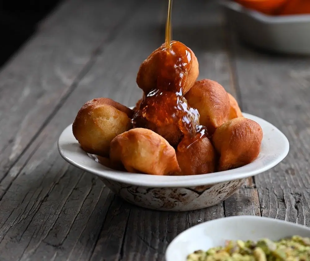 Originating in Greece, loukoumades are small teardrop-shaped doughnuts made with yeast. Sometimes served with a dark chocolate sauce, for this recipe I use a fragrant honey syrup infused with lemon juice and zest to coat the loukoumades in.