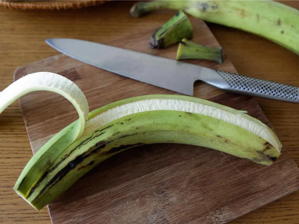 Using a knife, score the skin lengthways a few times to make it easier to peel.