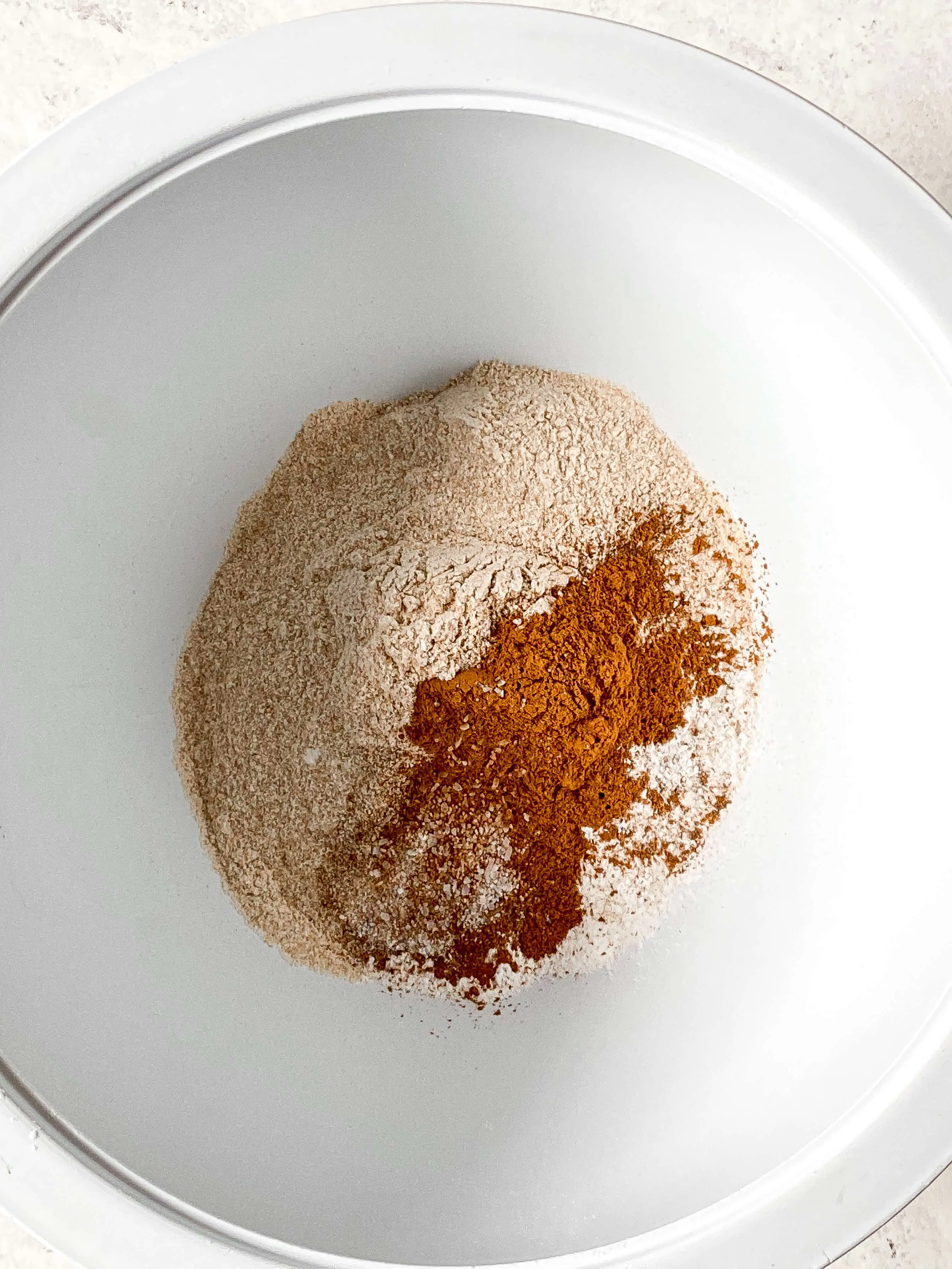 Combine All-Purpose Flour (1 1/2 cups), Baking Soda (1 tsp), Simply Organic Cinnamon, Ground (1 tsp), Ground Nutmeg (1/2 tsp), and Salt (1/2 tsp) in a large bowl and mix until combined.