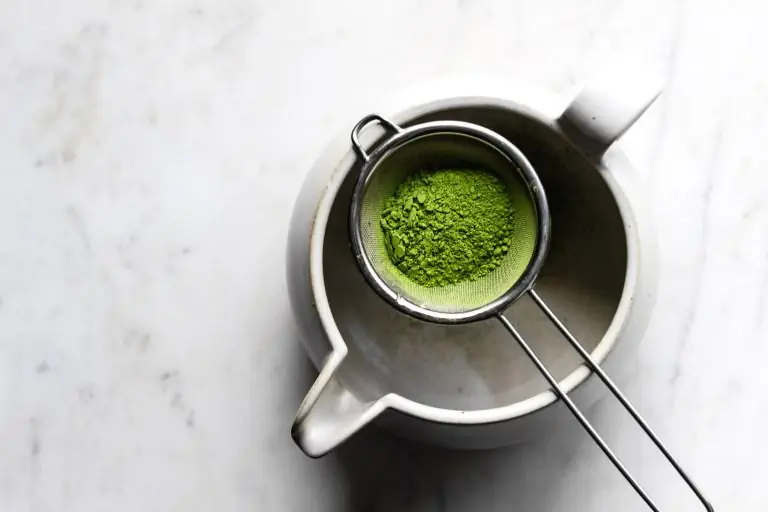 In a wide-mouthed mug or matcha bowl, sift Matcha Powder (1 tsp) through a fine sieve.