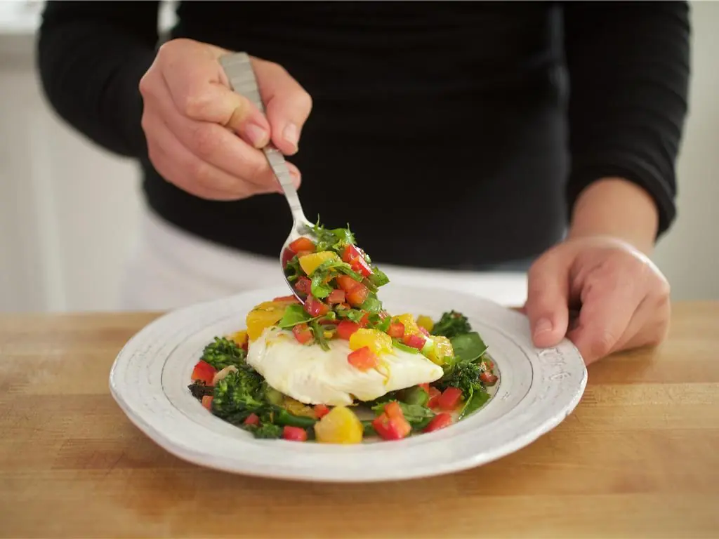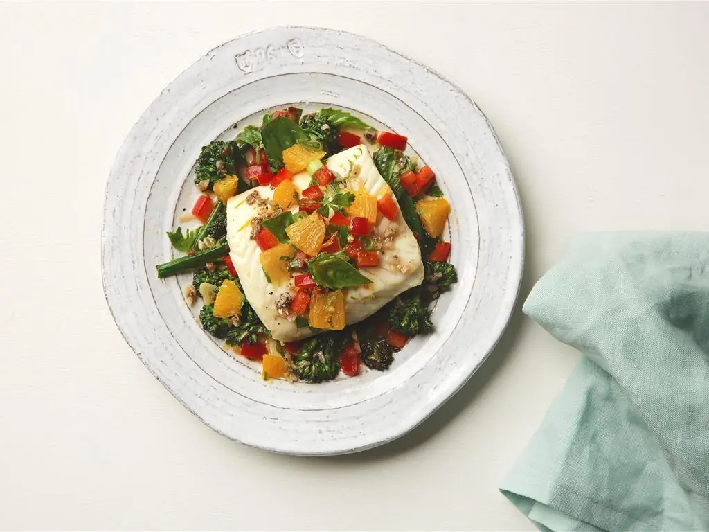 "The bright, fresh flavors and beautiful colors of this dish take me right back to my childhood in Italy. This dish has everything I love about Mediterranean cooking – simple food, simply prepared. Fruity olive oil, fresh fish, lovely citrus and sweet basil are signature elements." -Fabio Viviani