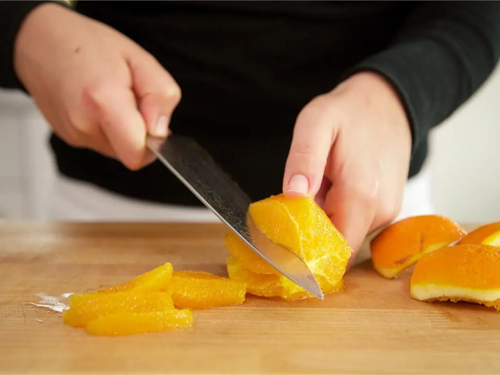 Zest the Oranges (2 2/3 Tbsp) and set aside. Slice off the bottom and top. Using even downward strokes, slice the skin away from the flesh. Discard skin, and remove any remaining white pith. Cut between the membranes to segment the orange.