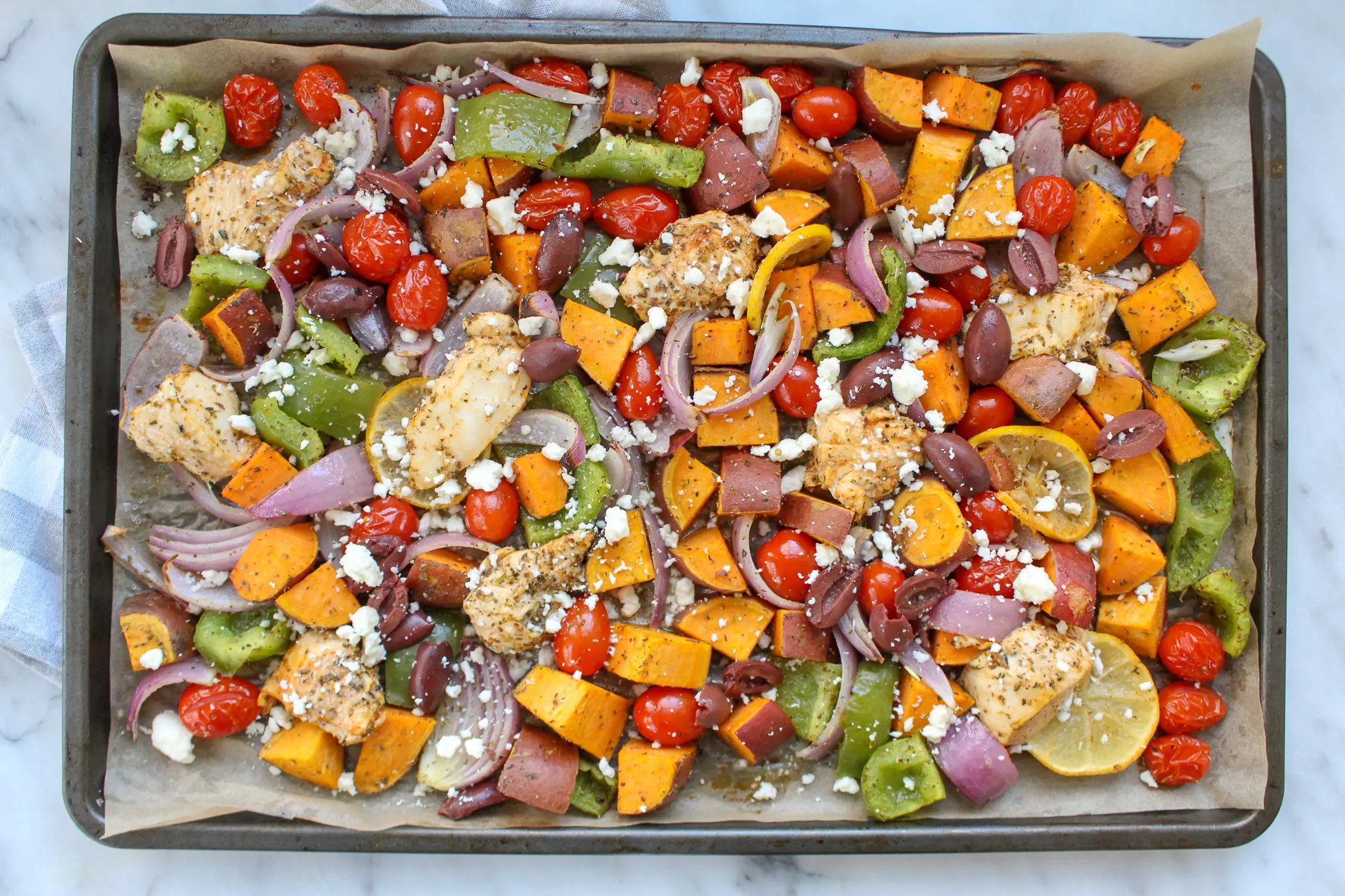 Mediterranean Sheet Pan Chicken and Sweet Potatoes