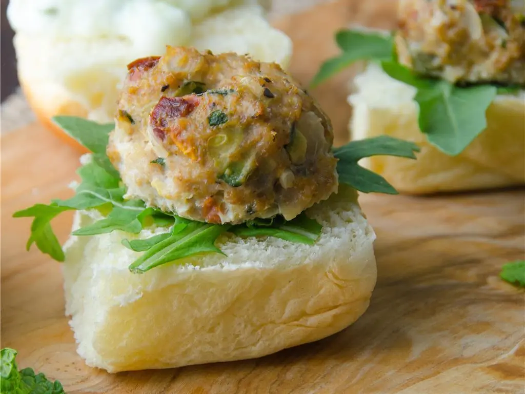 Transfer the meatballs to a platter and serve the tzatziki on the side. For meatball sliders, cut Dinner Rolls (50). Add Arugula (to taste) to the bottom half. Top it with a meatball, a dollop of tzatziki and the other half of roll.
