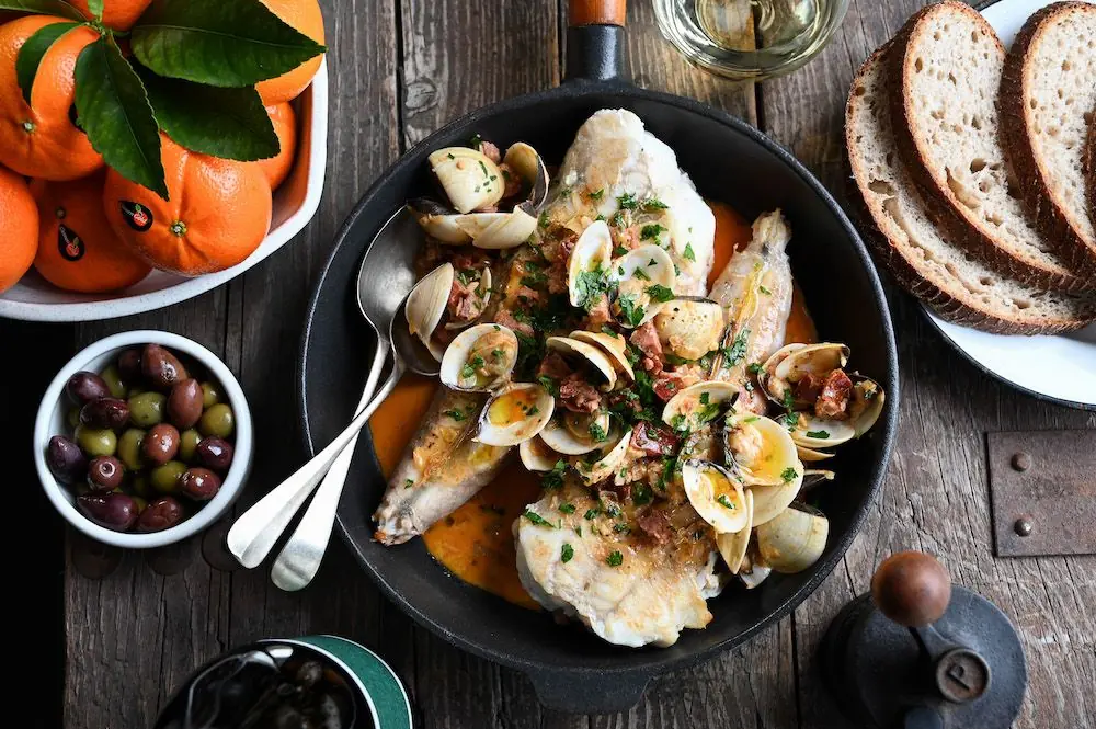Monkfish with Citrus, Chorizo, and Clams