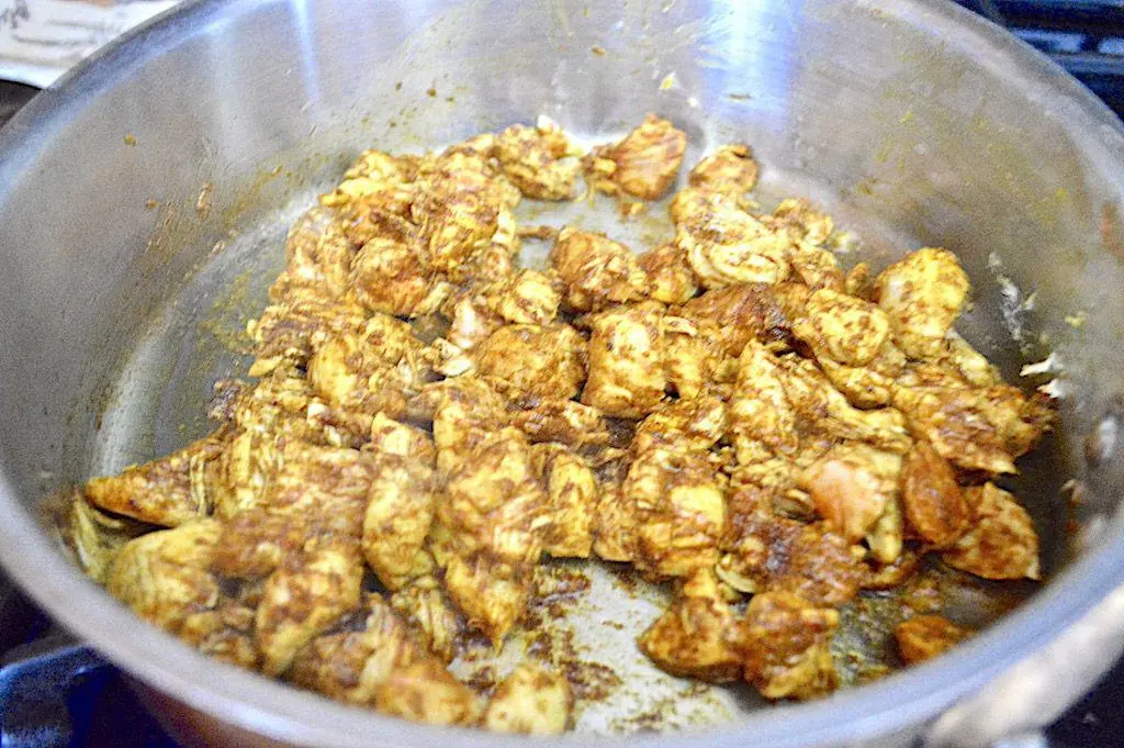 Return the chicken to the pan. Let the sauce come to a low boil, then reduce it to a simmer for 10 minutes.