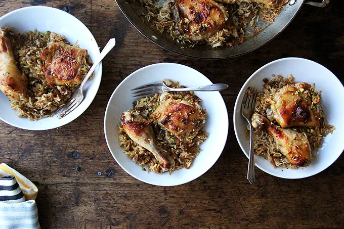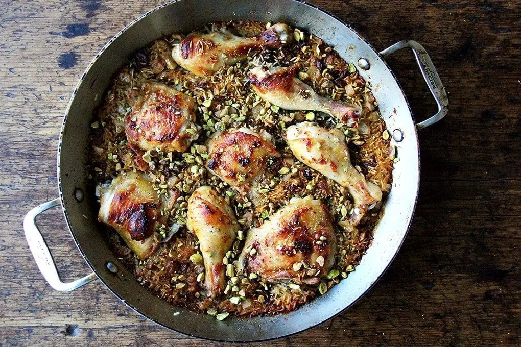 Moroccan-Spiced Chicken and Rice with Dates and Pistachios