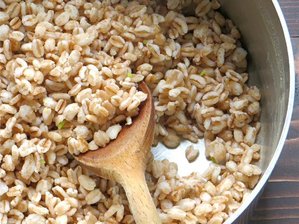 Add the Farro (1 cup) to the bean water and cook for the time recommended on the package directions. When the farro is done, drain in a colander or sieve and return the farro to the pot. Place the lid on the pot and set aside for about 10 minutes — this last part allows the farro to steam a little in the pot. Remove the lid and fluff with a fork. Set aside without the lid to cool.