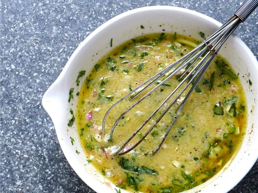 In a small bowl combine the zest and juice of the Lemon (1), Shallot (1), Tarragon (2 Tbsp), Champagne Vinegar (1 Tbsp), Olive Oil (1/3 cup), Dijon Mustard (1 Tbsp), Kosher Salt (1/2 tsp), and Freshly Ground Black Pepper (1/4 tsp). Whisk to combine.