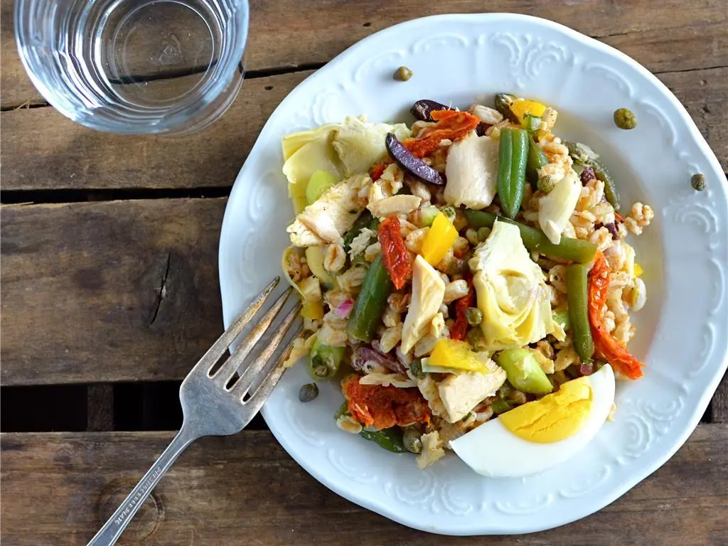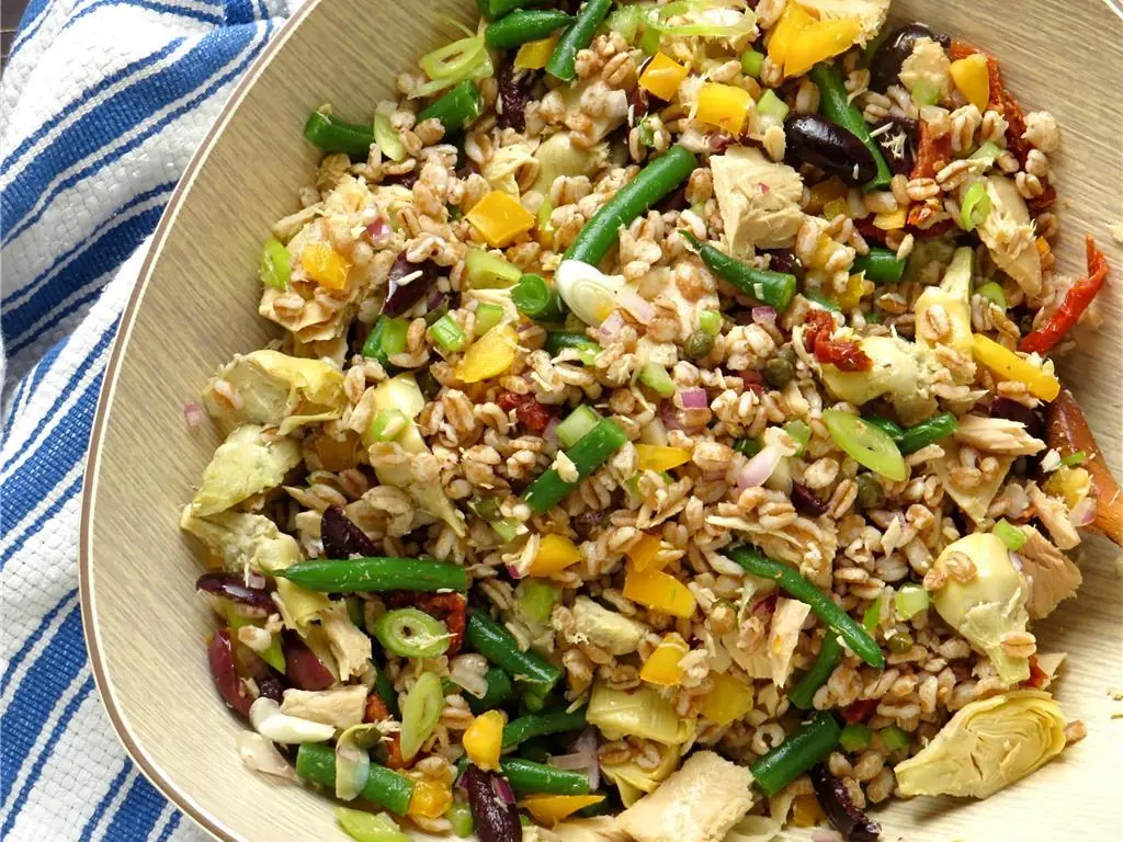 Add the farro to the vegetables and toss. Add the vinaigrette and toss so that vegetables and farro are coated with the dressing.