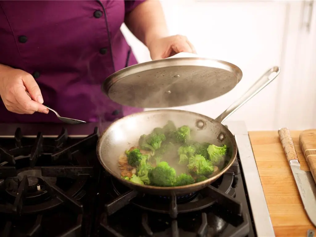 Stir and add a 1/4 cup of water. Reduce heat to medium, cover, and steam for 3 more minutes.