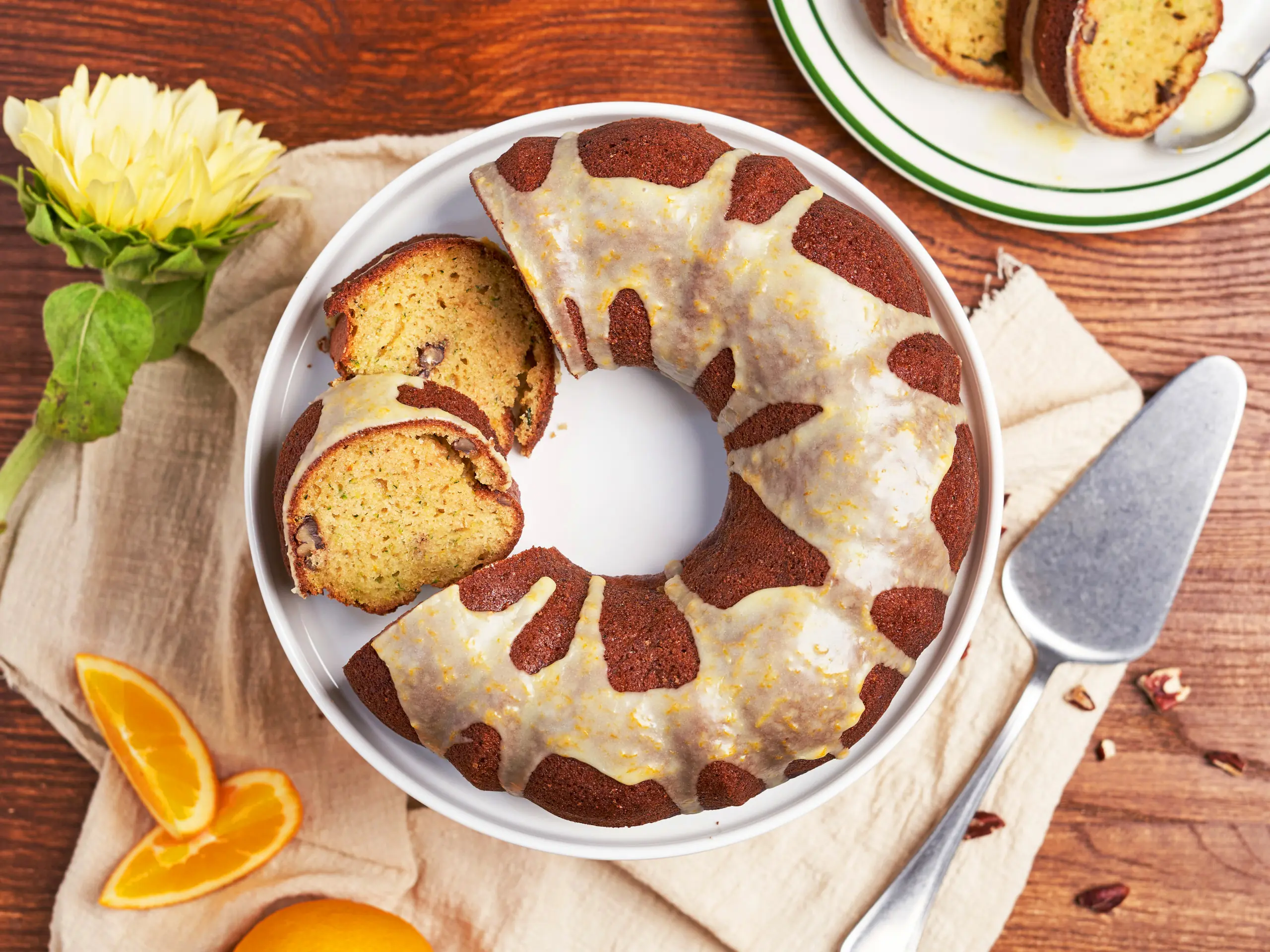 Discover a delightful orange zucchini cake โ moist, fluffy, and bursting with flavor. Zucchini & Greek yogurt create a tender, moist texture. Orange zest, ginger, and pecans add vibrancy and crunch. Perfectly glazed in a Bundt pan. A simple mix for an extraordinary treat!