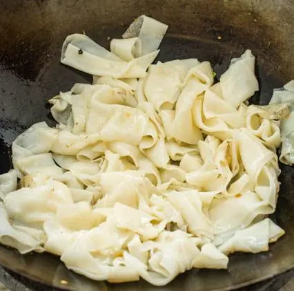 Add the rice noodles to the wok, spreading them out in a single layer.