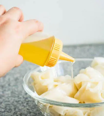 Pour Cooking Oil (1 Tbsp) over the noodles (fresh or previously dried). Toss the noodles with your fingers to coat them in the oil.