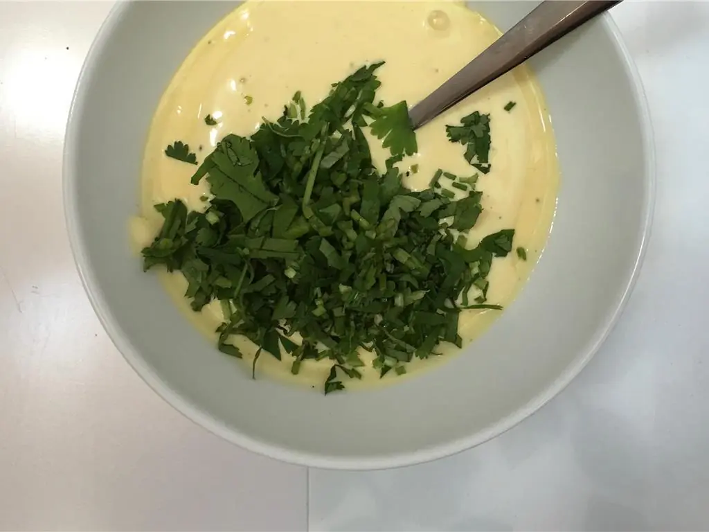 For the cilantro mayonnaise, combine the Mayonnaise (2 Tbsp), the juice from Lemon (1) and the Fresh Cilantro (3 Tbsp) Season with Salt (to taste) and Ground Black Pepper (to taste). Stir well and place the mayo in the fridge until needed later on.