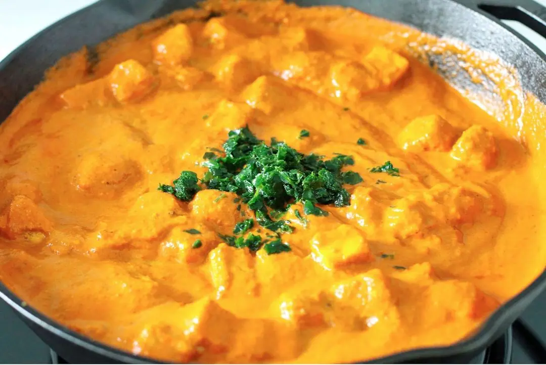 Pour the Kemps Half & Half (2 Tbsp) in a circular motion over the Paneer Butter Masala, sprinkle with Fresh Cilantro (1 Tbsp) and add a small dollop of Unsalted Butter (1 tsp) to the center of the dish.