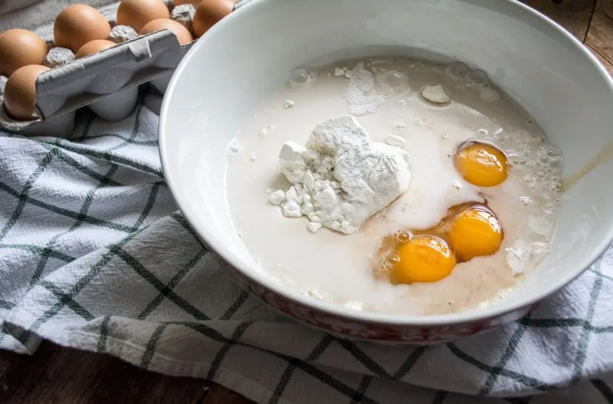 Add Vanilla Extract (1 tsp), Honey (1 Tbsp), Eggland's Best Classic Eggs (3), and Almond Milk (1 cup), then whisk 1 to 2 minutes or until batter is blended well with little to no clumps. The batter should be very thin, not thick like pancake batter. Add more milk if needed.