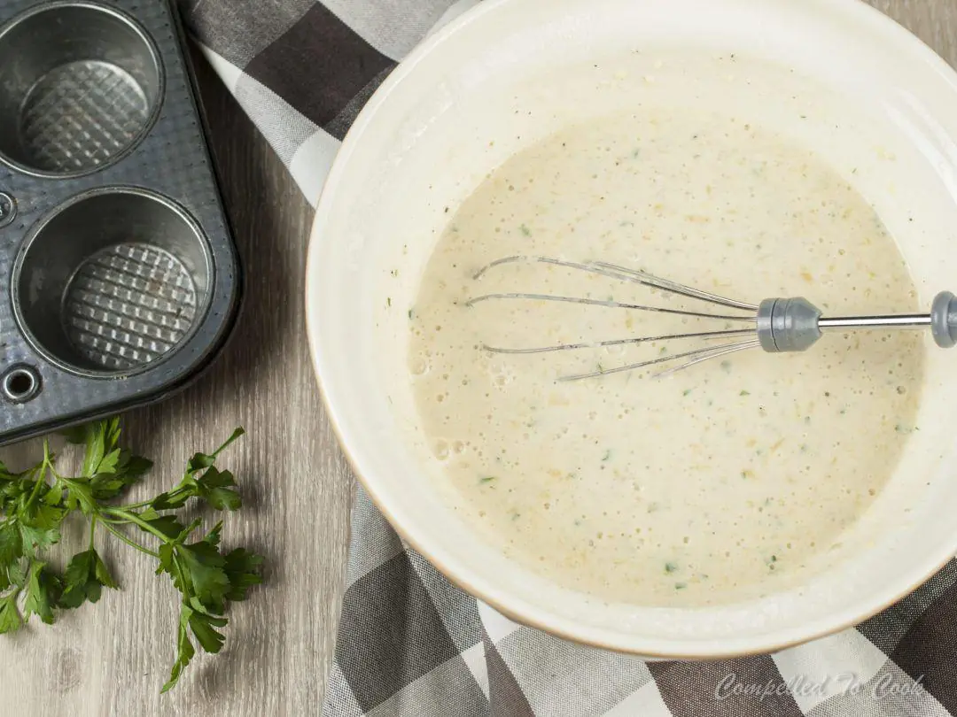 Add 2% Reduced Fat Milk (1 cup) and whisk until combined. Add Unsalted Butter (4 Tbsp), Italian Flat-Leaf Parsley (1 Tbsp), Freshly Ground Black Pepper (1 tsp), Salt (1/2 tsp), Ground Nutmeg (1/2 tsp), All-Purpose Flour (2/3 cup) and whisk until smooth, approximately 30 seconds.