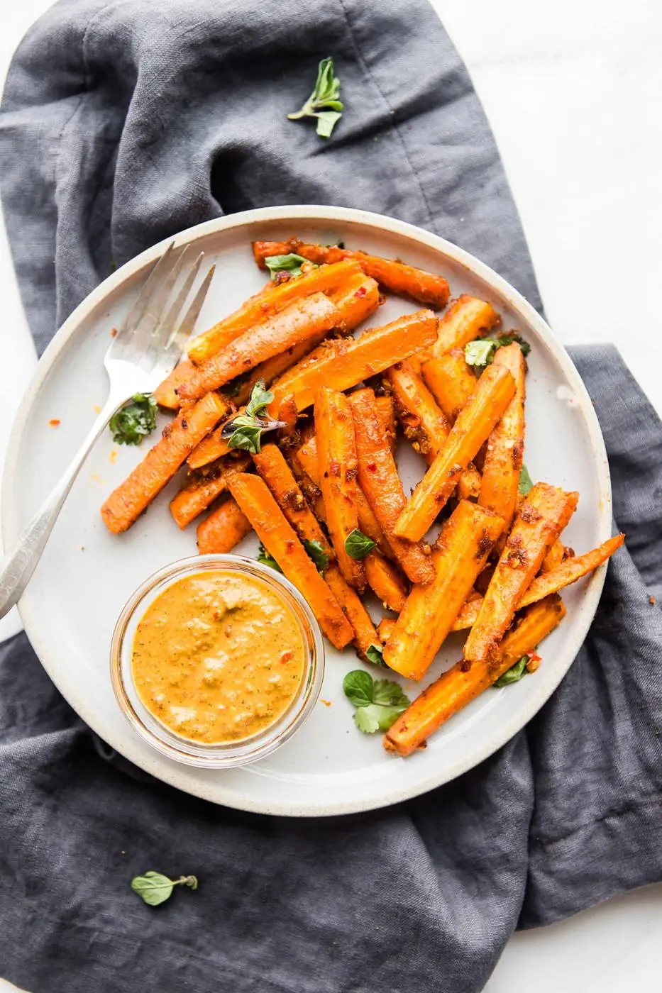 Flip carrot fries over with a spatula and bake another 15 to 25 minutes or until crispy edges. If you want extra crispy, broil last minute.