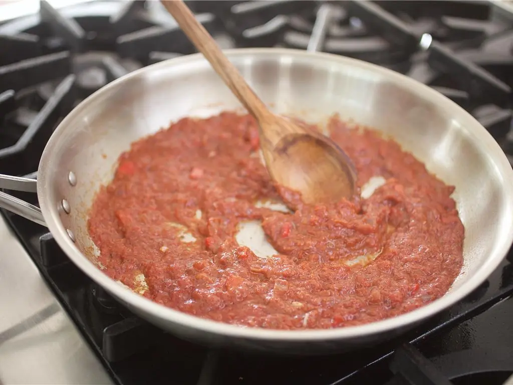 Add the Crushed Tomatoes (1 can), Dijon Mustard (1 pckg), Dried Oregano (1/2 tsp), Cayenne Pepper (1/4 tsp), Salt (1/4 tsp), and Ground Black Pepper (1/4 tsp). Bring to a simmer.