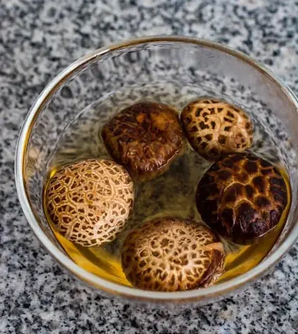 Next, soak the Dried Shiitake Mushrooms (4) in warm water for about 30 minutes or until they turn soft.