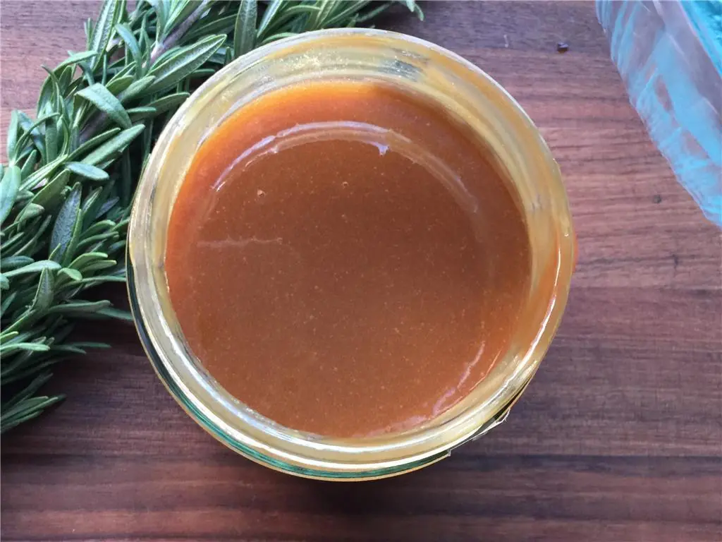 Add the Unsalted Butter (4 Tbsp) to the Caramel Sauce (1/2 cup).