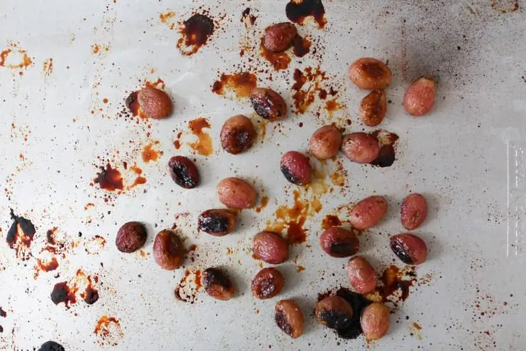 Place the Red Seedless Grapes (1 cup) on a baking sheet and drizzle with the Extra-Virgin Olive Oil (1 tsp). Add Kosher Salt (1 pinch) and a little Freshly Ground Black Pepper (to taste) and toss to coat. Roast for 15 minutes, tossing halfway through the cooking time, until the grapes have softened and the skins are lightly browned in spots. Let cool slightly.
